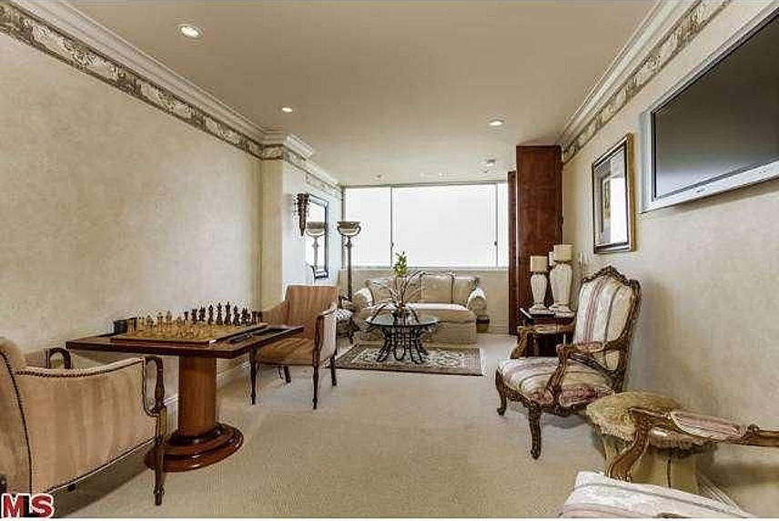 Gordy’s condo boasts floor to ceiling windows with uninhibited views of the Eastern Sunset Strip/Hollywood Hills, built in entertainment system, and a doublewide island separating the kitchen from the living room. Double doors welcome you into the master bedroom where a private sitting room, private veranda, double sink vanity, separated toilet room, and a bath/shower set up awaits you.